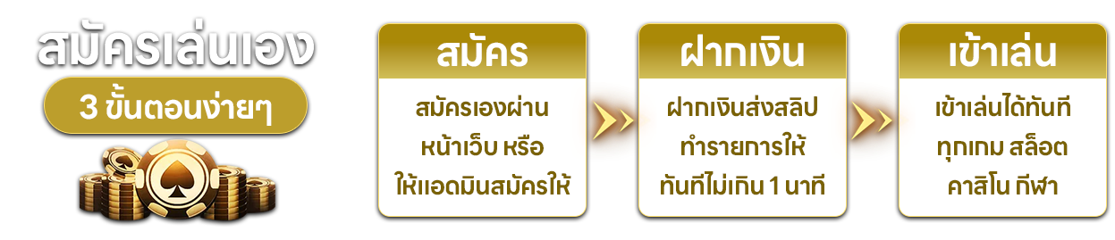 ขั้นตอนการสมัครสมาชิกนั้นไม่ยุ่งยาก เพียงกรอกข้อมูลส่วนตัวพื้นฐาน เช่น ชื่อ-นามสกุล เบอร์โทรศัพท์ และบัญชีธนาคาร จากนั้นระบบจะส่ง username และ password ให้คุณผ่าน SMS ทันที เมื่อได้รับข้อมูลการเข้าสู่ระบบแล้ว คุณสามารถเริ่มทำการฝากเงินเพื่อรับโบนัสต้อนรับได้เลย